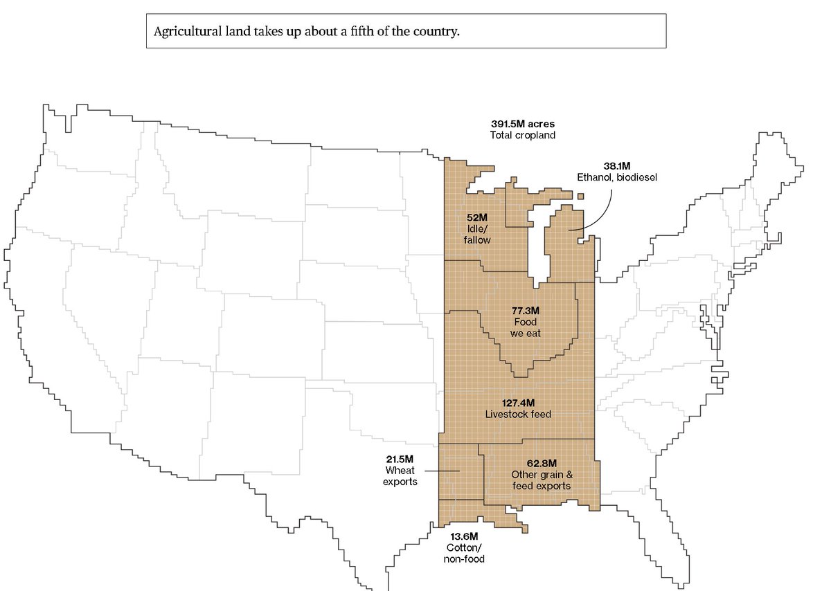 Meanwhile, 38 million acres of farmland is used for corn ethanol - fuel. Acreage that requires tons of fertilizers, herbicides, gasoline for harvesting, etc. We're romanticizing farmland. It ain't pure/small.10x more land is used for ethanol production than for parking lots!