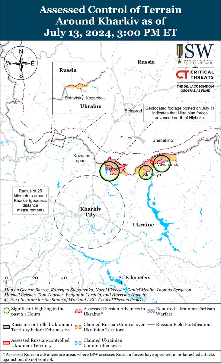 2/ Geolocated footage published on July 6 shows that Ukrainian forces recently advanced northwest of Hlyboke while counterattacking in the area, and available satellite imagery suggests that Ukrainian forces conducted a counterattack in the area between July 3 and 6.
