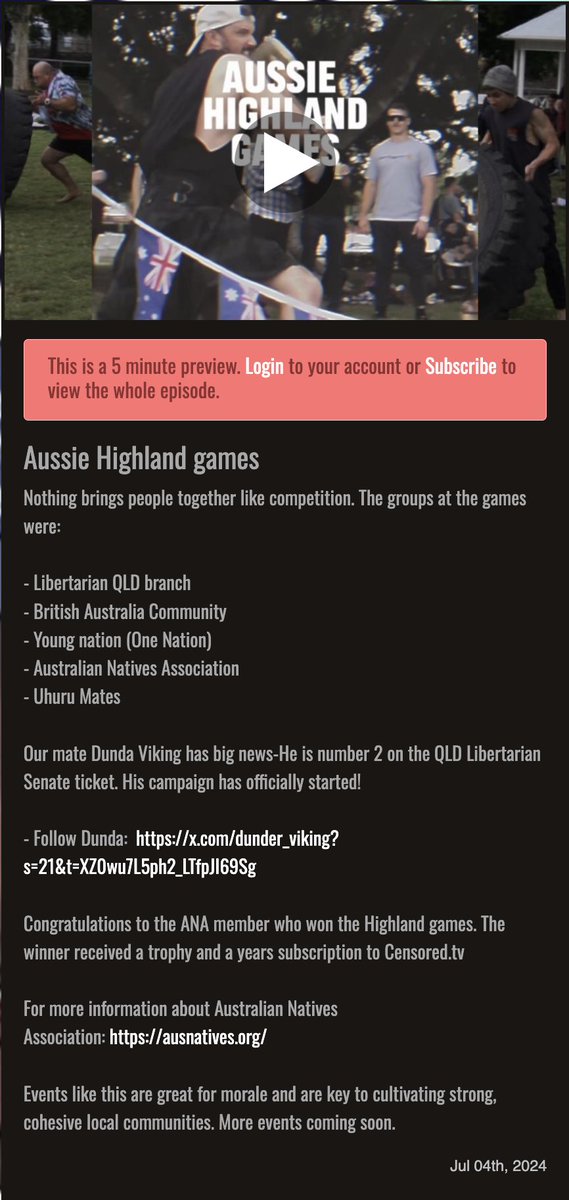 He has recently referred to multiculturalism as "demonic" and interviewed Avi Yemini about banning Muslims. In his spare time, he's attending "highland games" events in the park with his local neo-Nazis.