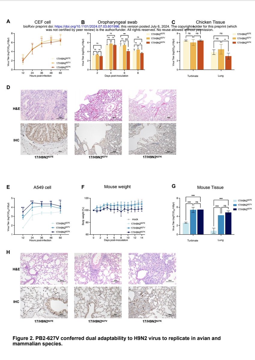 The new mutation in avian influenza viruses PB2-627V allowing the virus to efficiently infect both birds and humans, biorxiv.org/content/10.110…