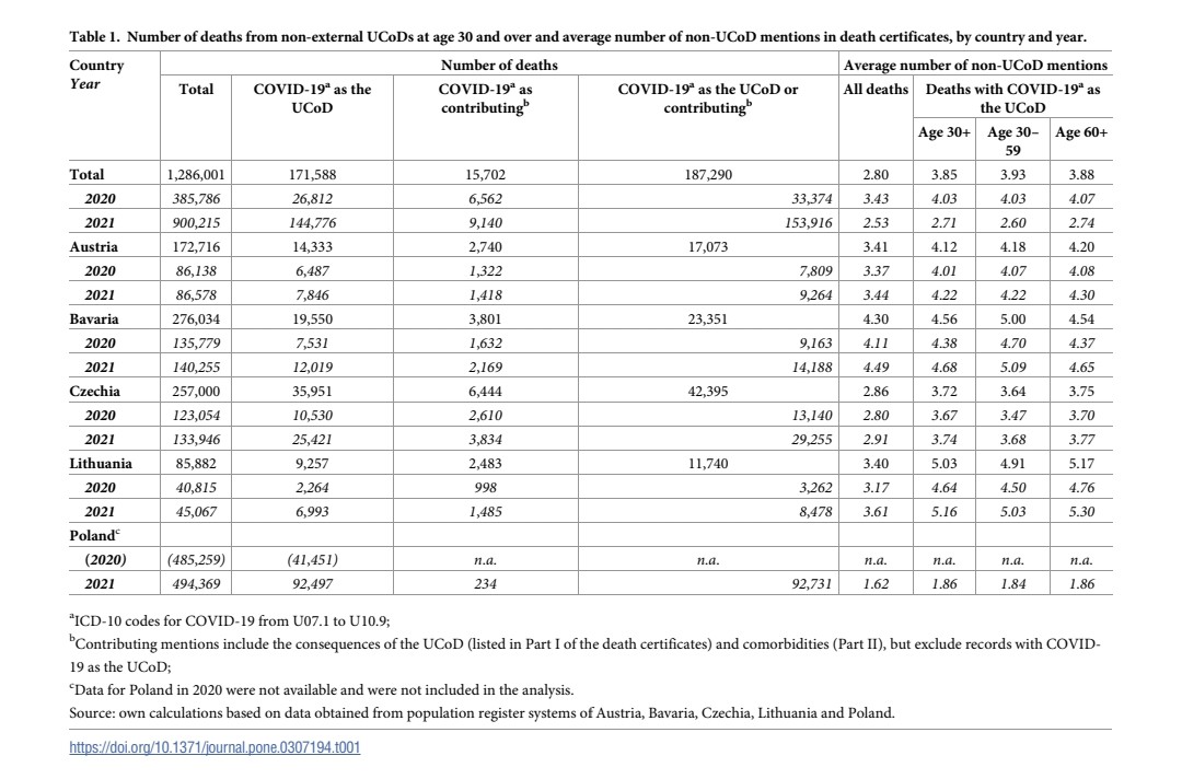 2) The study examines COVID-19 mortality in Central Europe, focusing on the importance of cause-of-death certification in assessing the full burden of the pandemic. It uses detailed death certificate data from Austria, Bavaria, Czechia, Lithuania, and Poland to identify cases ...