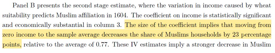 "moving from zero income to the sample average decreases the share of Muslims households by 23 percentage"