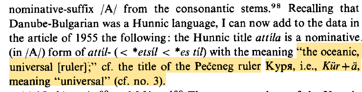 Attila's name was an old Turkish title that meant something like "the universal ruler", a title that was also mentioned for a pecheneg ruler.