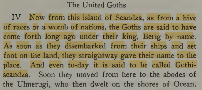 of races or a womb of nations, the Goths are said to have come forth long ago" - Getica, 551 AD