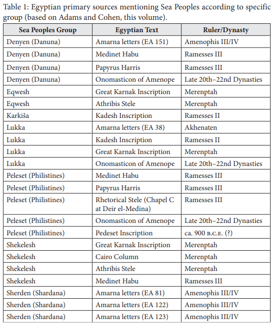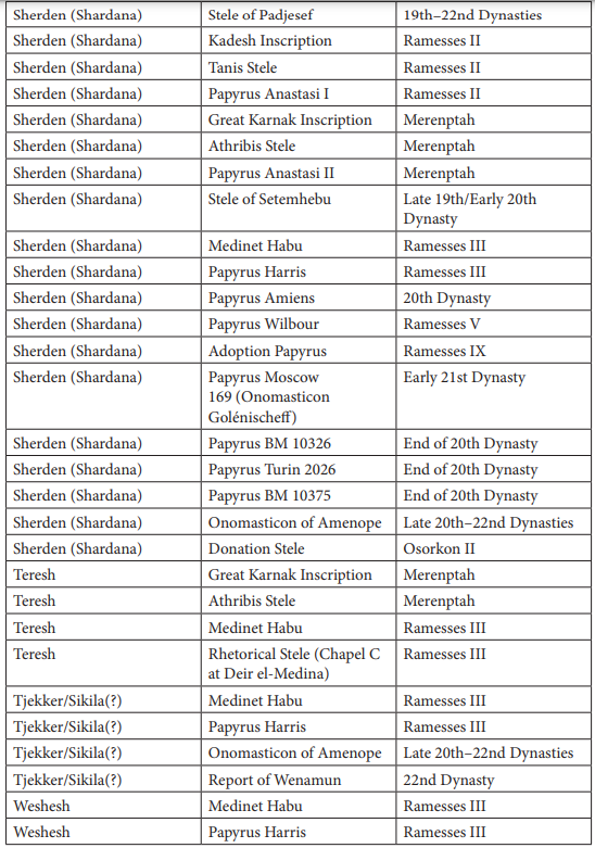 Here is the amount of times various groups of "Sea People" are mentioned in Egyptian primary sources.