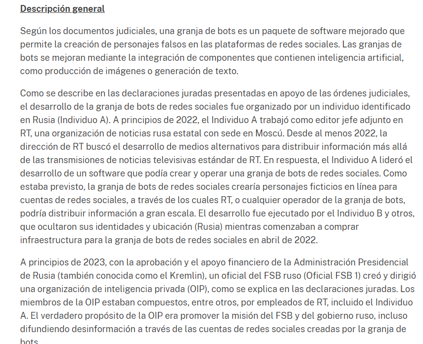 El Departamento de Justicia de EEUU desarticuló una red de 968 cuentas de bots rusos que operaban en X a partir de RT Russia y el FSB, el servicio de inteligencia de Putin