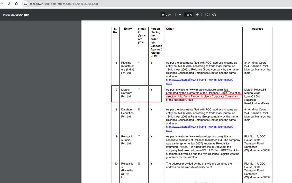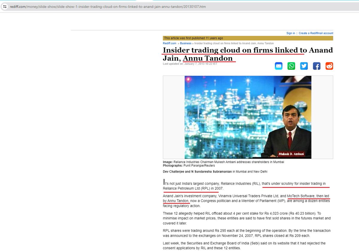 3. In 2007, there were allegations of insider trading on Reliance via a software company, MoTech Software, which was part of the Reliance group, and Anu Tandon was the director of that company.