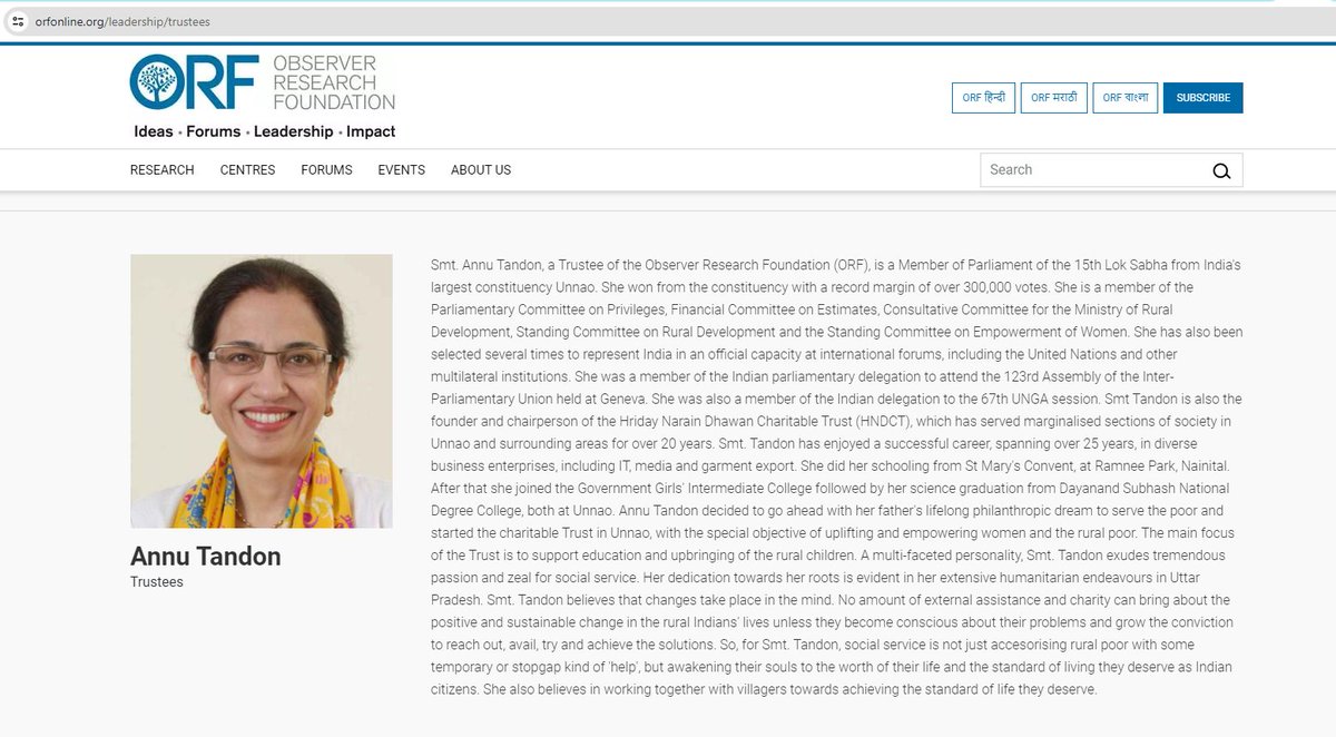 5. She is a trustee of Ambani's think tank ORF.