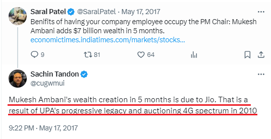 14. Here, Sachin Tandon accepts that Reliance is at the top because of Congress!