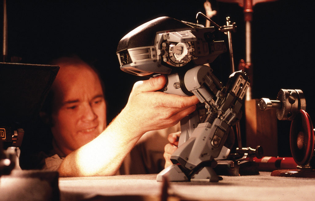 Live-action animator Phil Tippett brought ED-209 to life with a series of rear projected stop-motion animated miniatures. It was voiced by Jon Davison and additional noises were used including a leopard for the roar and a pig squealing when ED-209 falls down the stairs.
