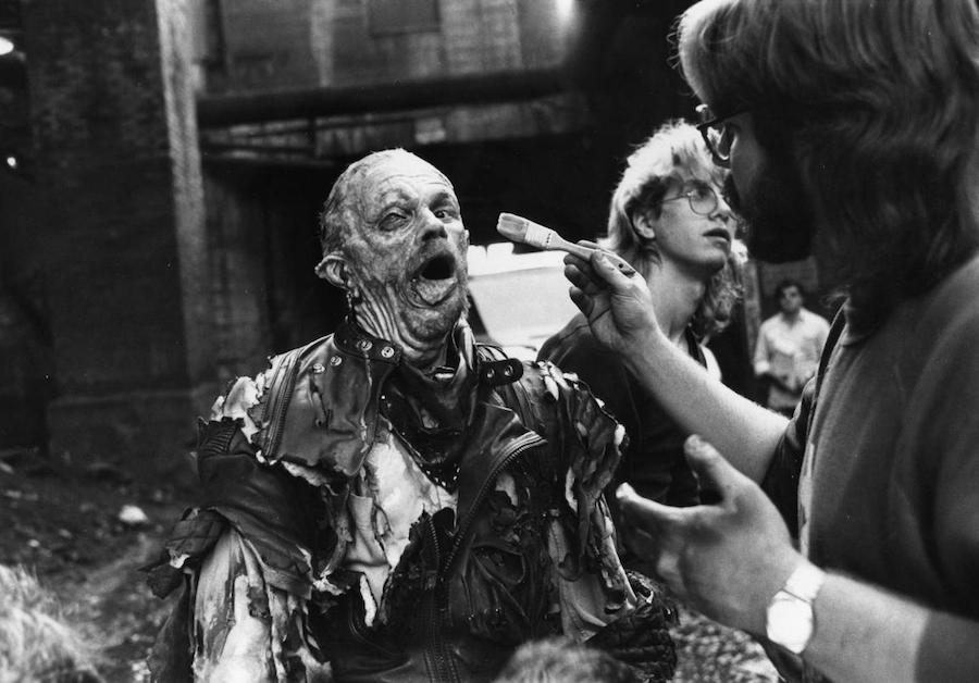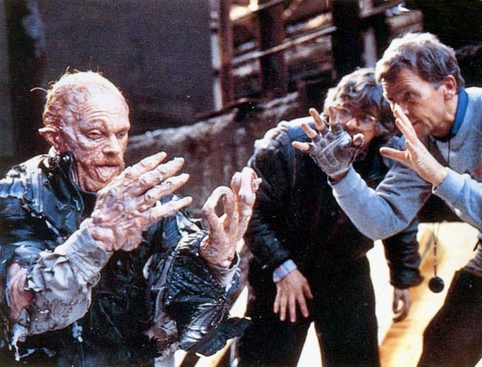 One of the memorable scenes is when Emil is hit by toxic waste. Created by Rob Bottin and inspired by The Incredible Melting Man, a dummy of Emil was designed so the head would pop off on impact, while balloons filled with leftover food were thrown at the windshield.