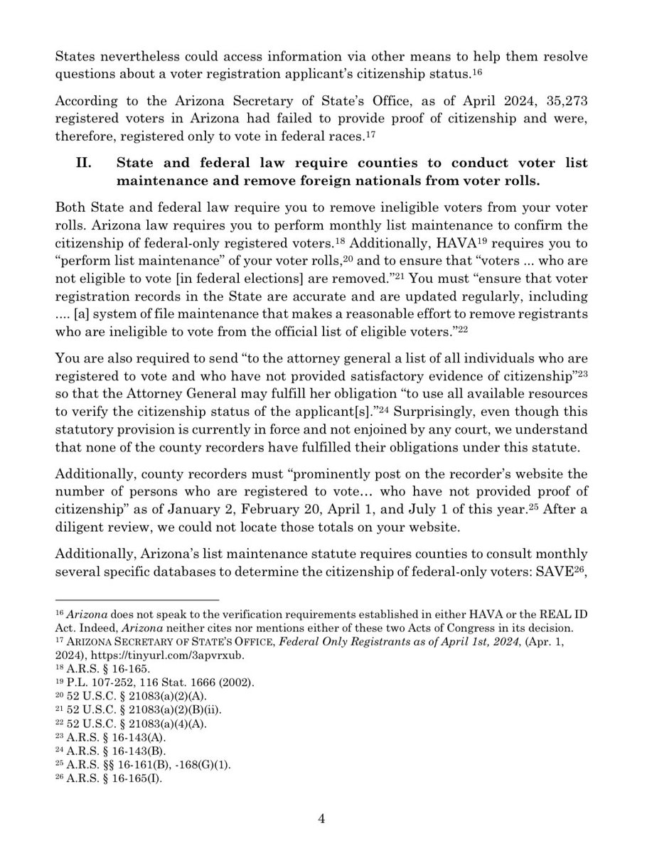 /2 We sent legal demand letters to all 15 Arizona County Recorders demanding they take action to remove foreign citizens from their voter rolls.