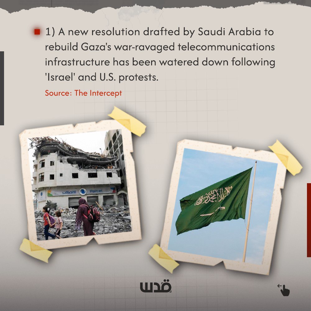A new resolution drafted by Saudi Arabia to rebuild Gaza's war-ravaged telecommunications infrastructure has been watered down following 'Israel' and U.S. protests.