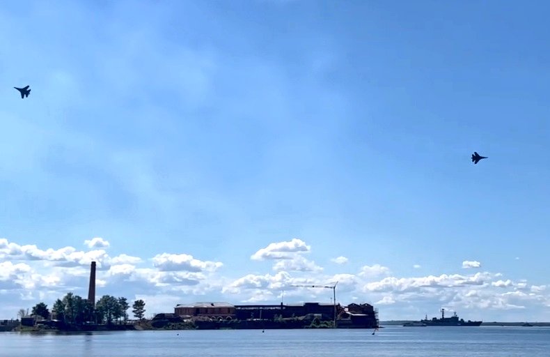 Some parade preparation like formation and aerobatics training continued over Kronstadt even today. 4/4
