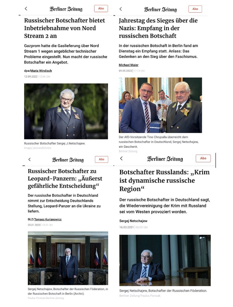Friedrich pflegt enge Beziehungen zur russischen Botschaft und ihrem Botschafter S. Netschajew in Deutschland.