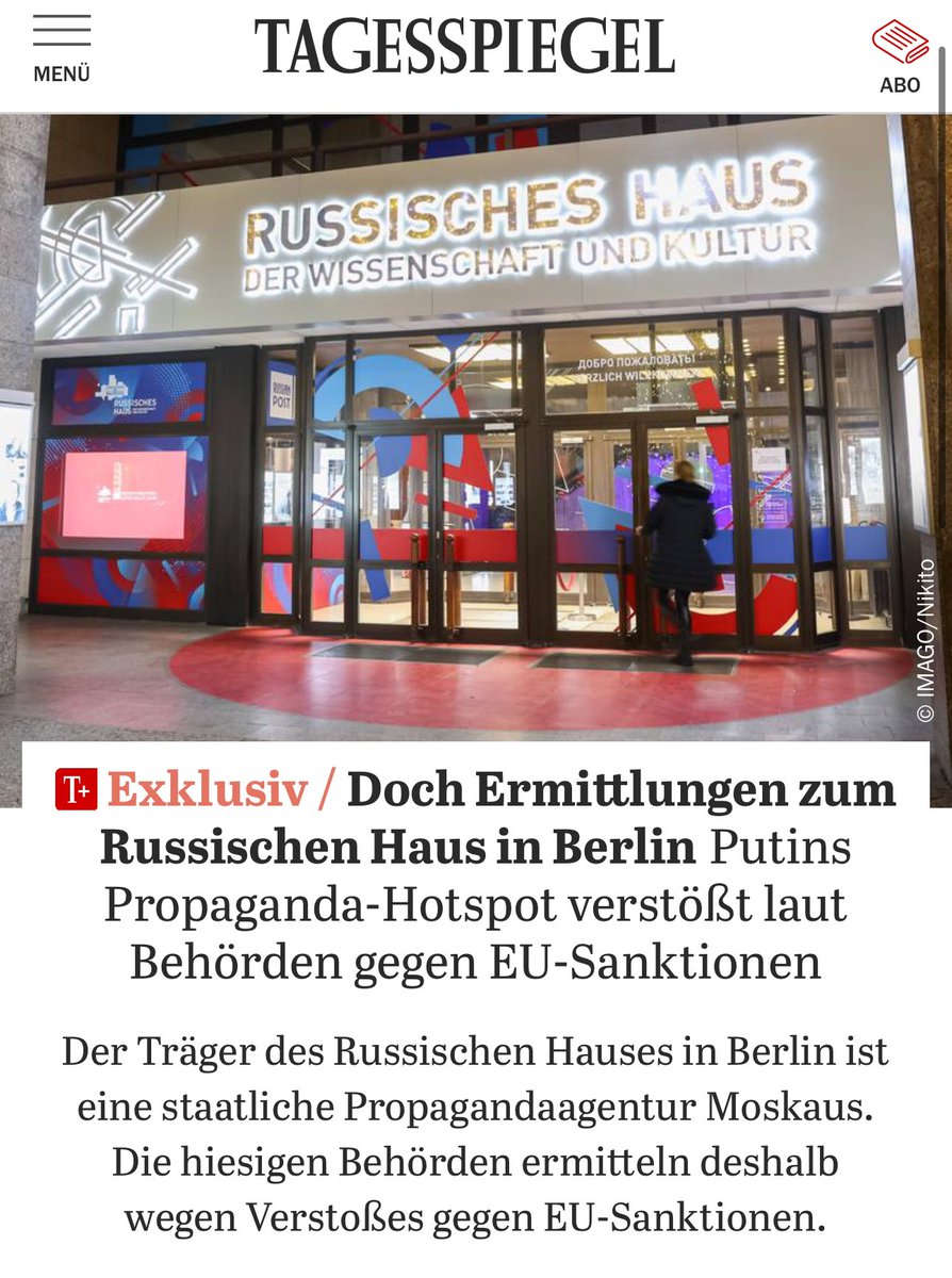 «Rossotrudnichestvo», der Betreiber des „Russischen Hauses“, unterliegt EU-Sanktionen als „Struktur zur Koordinierung der Aktivitäten russischer Einflussagenten“ und Propaganda.