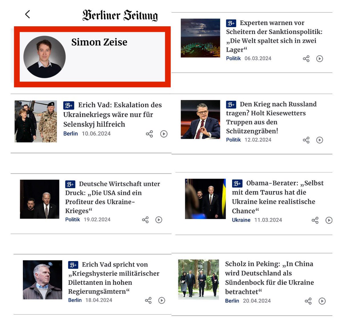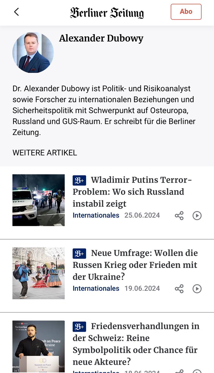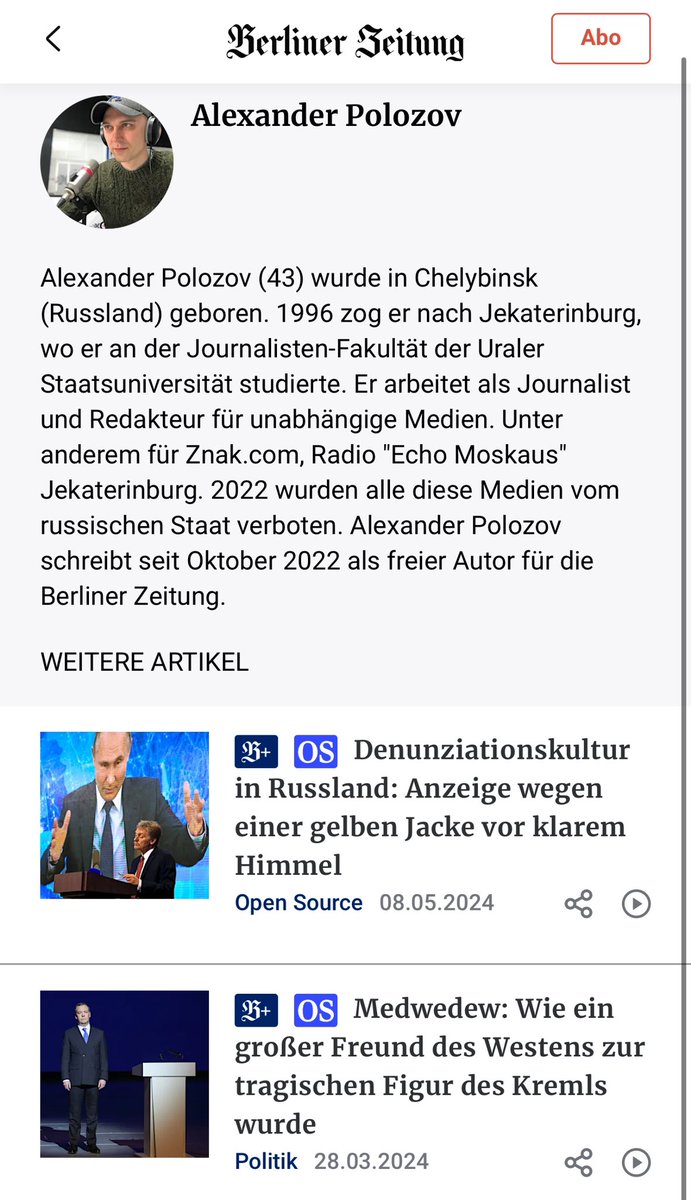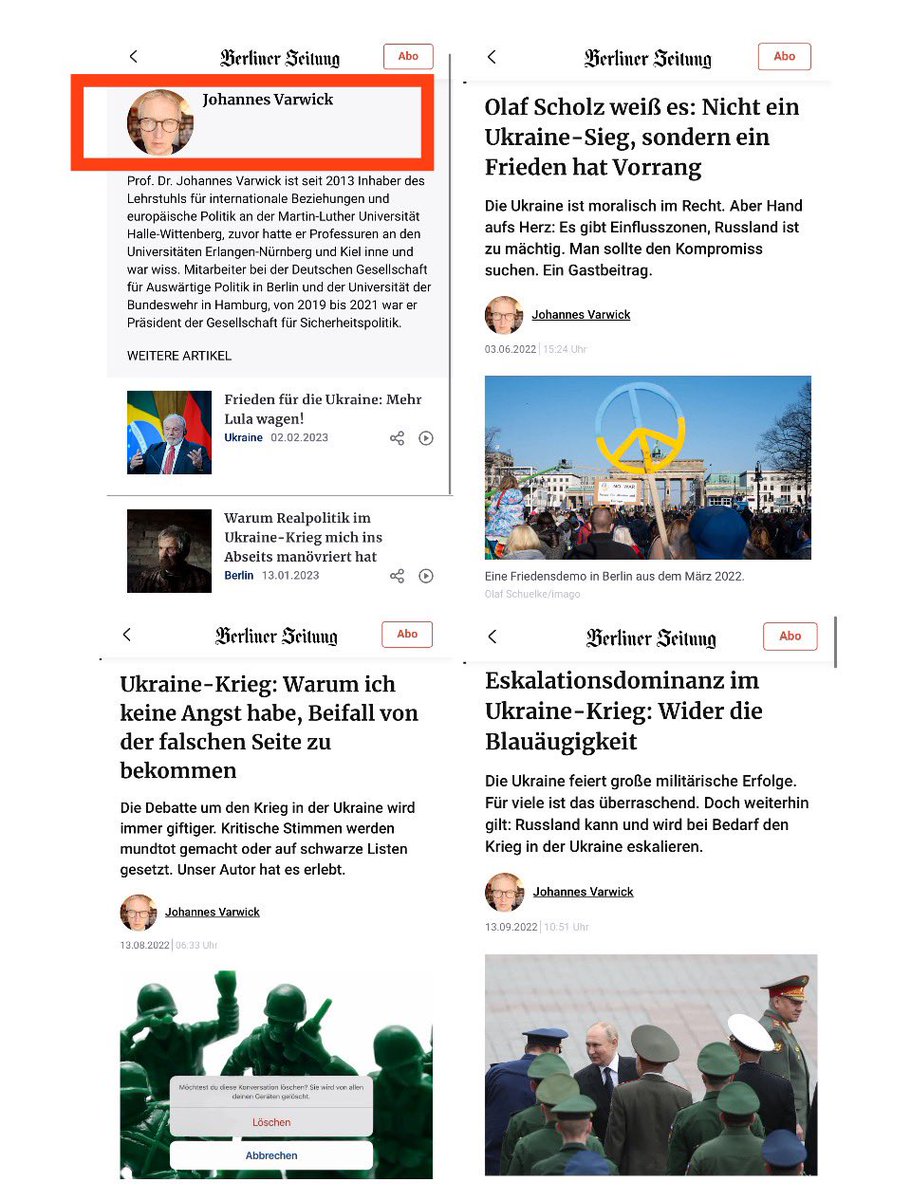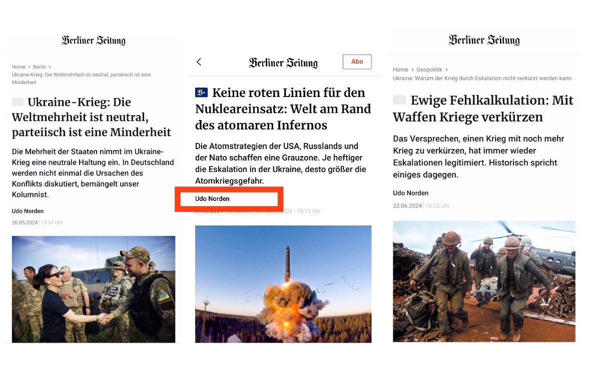 Man kann die Kreml-Rhetorik in seinen zahlreichen Artikeln für die Berliner Zeitung nicht ignorieren, die sich bereits in den Schlagzeilen widerspiegelt.