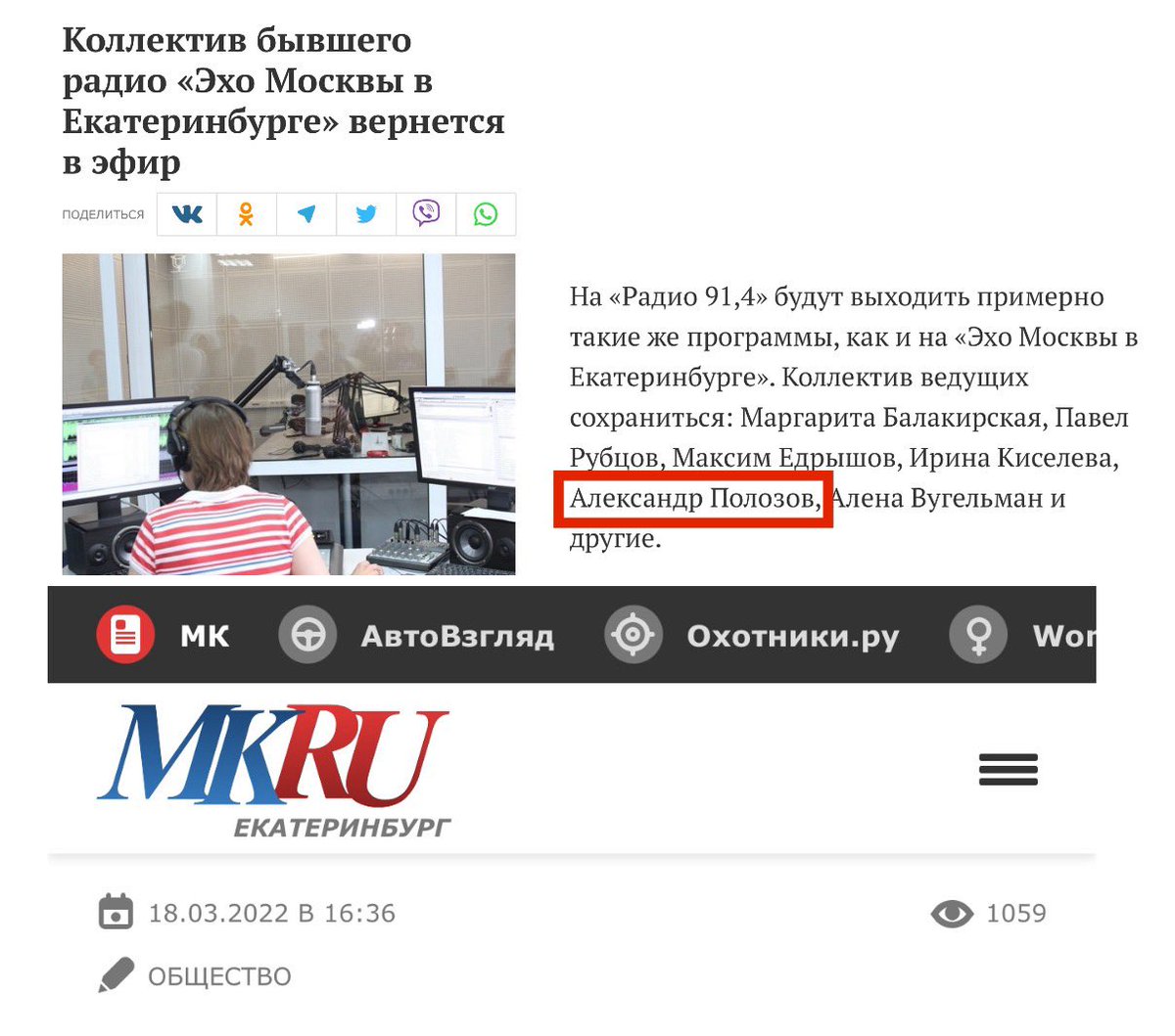 Polozov arbeitete für den "unabhängigen" Radiosender „Echo Moskau“, das Teil der vom Kreml finanzierten „Gazprom Media Holding“ war.