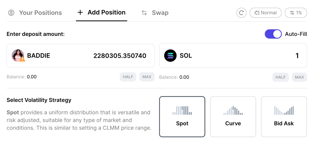 ◈ In the Spot option, you will evenly distribute liquidity across the baskets and receive commissions.