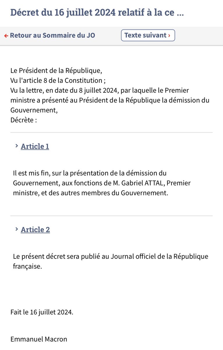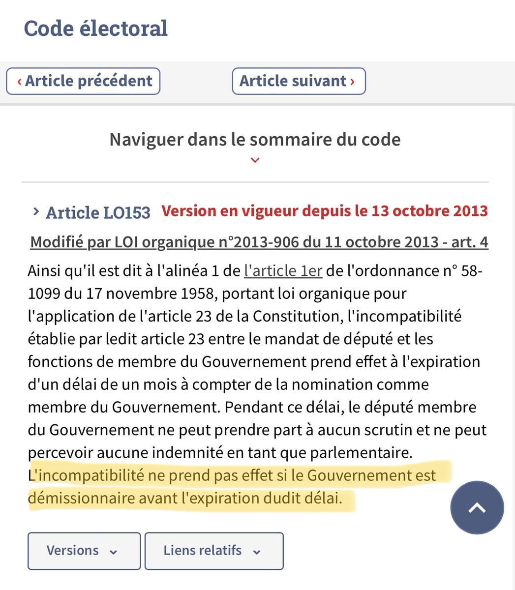 ❗️Puisque le Gouvernement est désormais démissionnaire (décret du 16 juillet, ), « l’incompatibilité ne prend pas effet », donc les ministres élus députés peuvent siéger et voter !