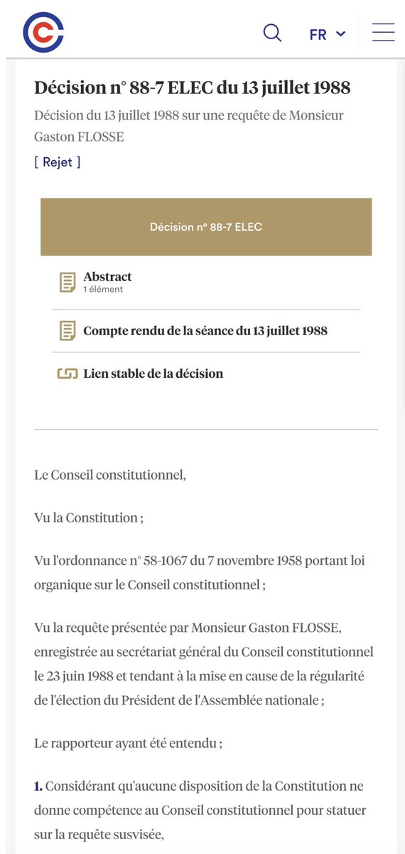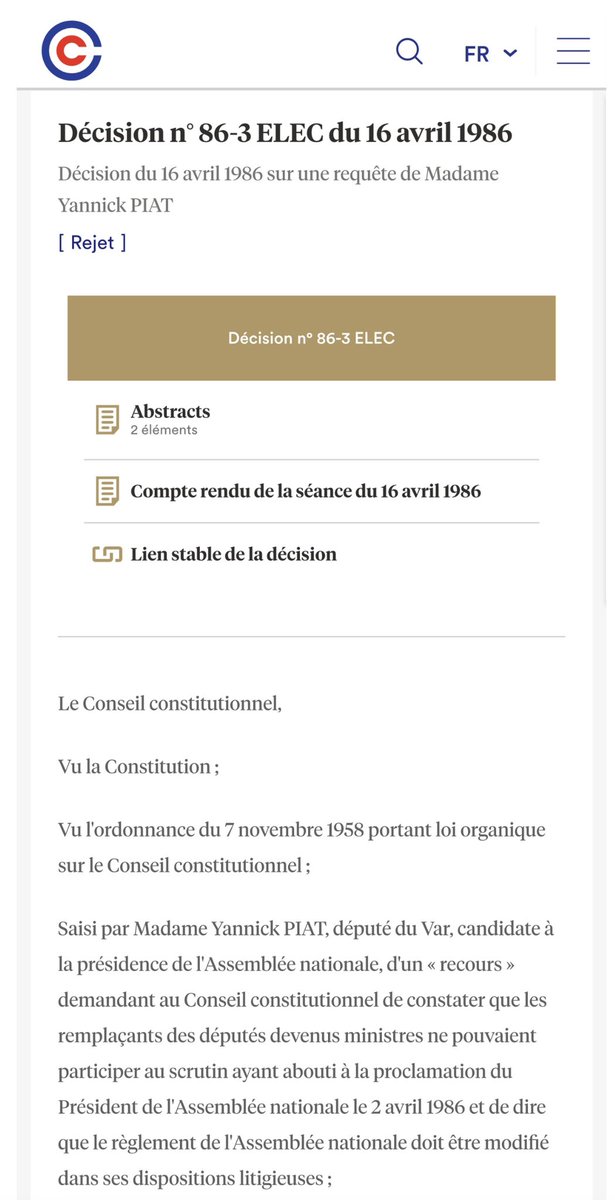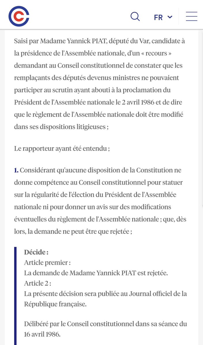 2️⃣ À plusieurs reprises également, le @Conseil_constit a été saisi de l’élection du Président de l’Assemblée (en 1986 et en 1988), notamment.