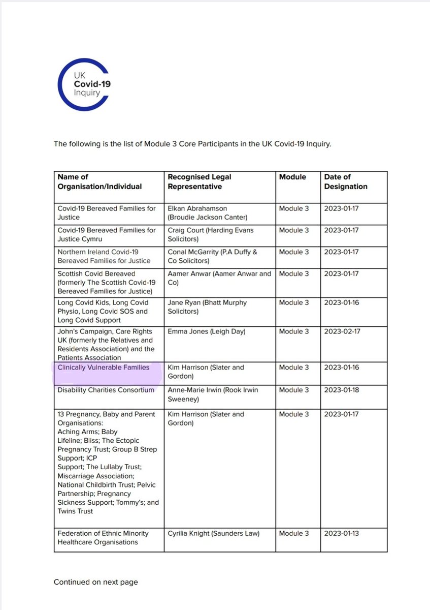 Clinically Vulnerable people were rejected from the first 2 sections of the #CovidInquiryUK, unable comment on planning for future pandemics, even though by Baroness Hallett's own admission we will "suffer the most".