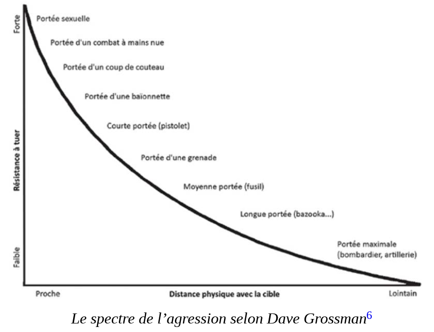 Cela a déjà été analysé au XIXe siècle par Clausewitz, qui écrivait dans «De la guerre» : «Avec une fronde, nous pouvons imaginer un certain degré de colère accompagnant le lancement de la pierre ; ce sentiment intervient beaucoup moins dans la décharge d’un mousquet […]» 19/25