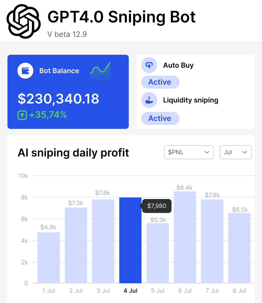 ✜ Hurry to create your personal sniper bot to come out of this cycle as a millionaire.