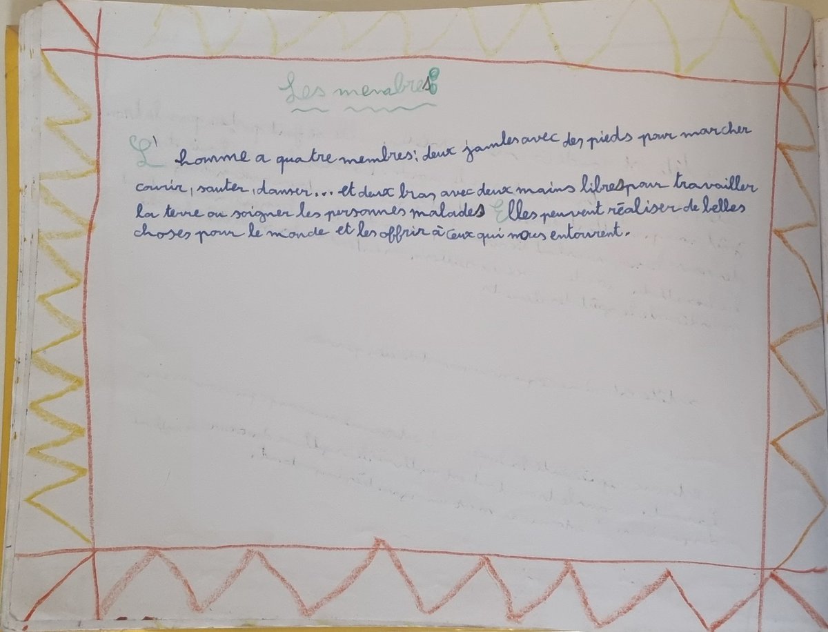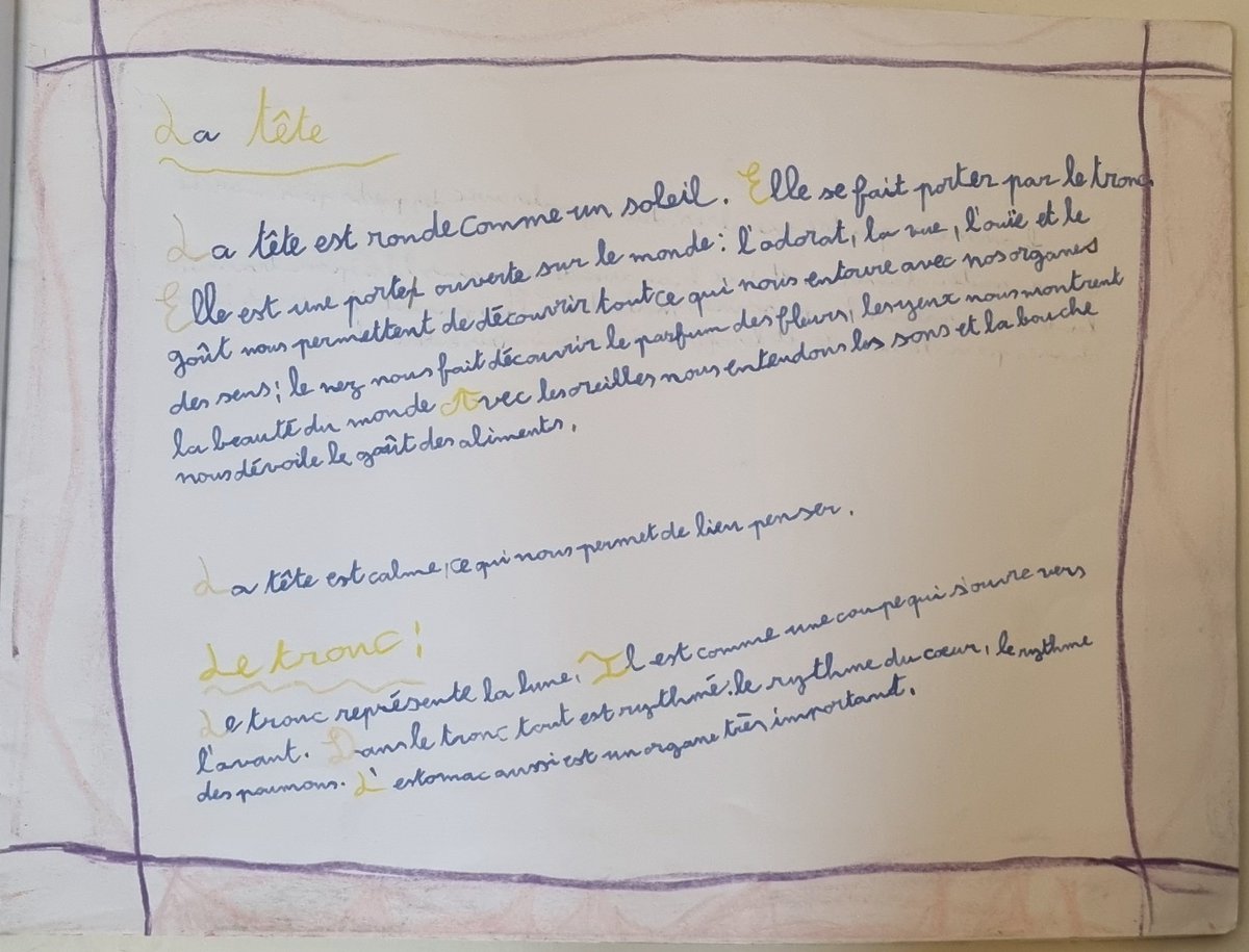Pour qui sait décrypter ce qui est écrit et dessiné, il nous montre comment les élèves de ces écoles sont endoctrinés à l'idée anthroposophique selon laquelle le corps humain serait une "tripartition" : 👇