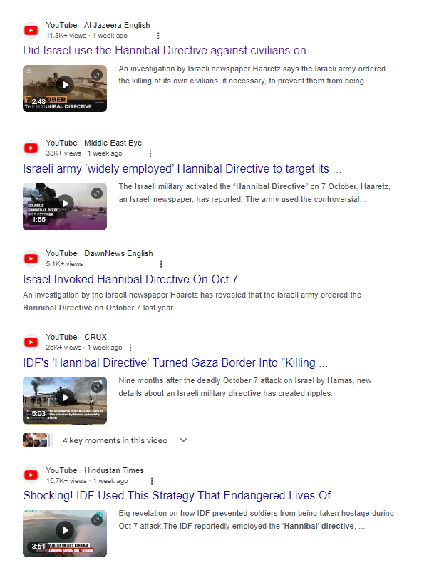 4/ Nor have I seen this story told in any great detail on Youtube – or at least not in the main high volume channels, nor on television. This image shows the view numbers of the most recent reports published on Youtube which are all relatively modest given the story's importance, both in terms of the facts it contains, but also in terms of its political implications in both Israel and the United States.