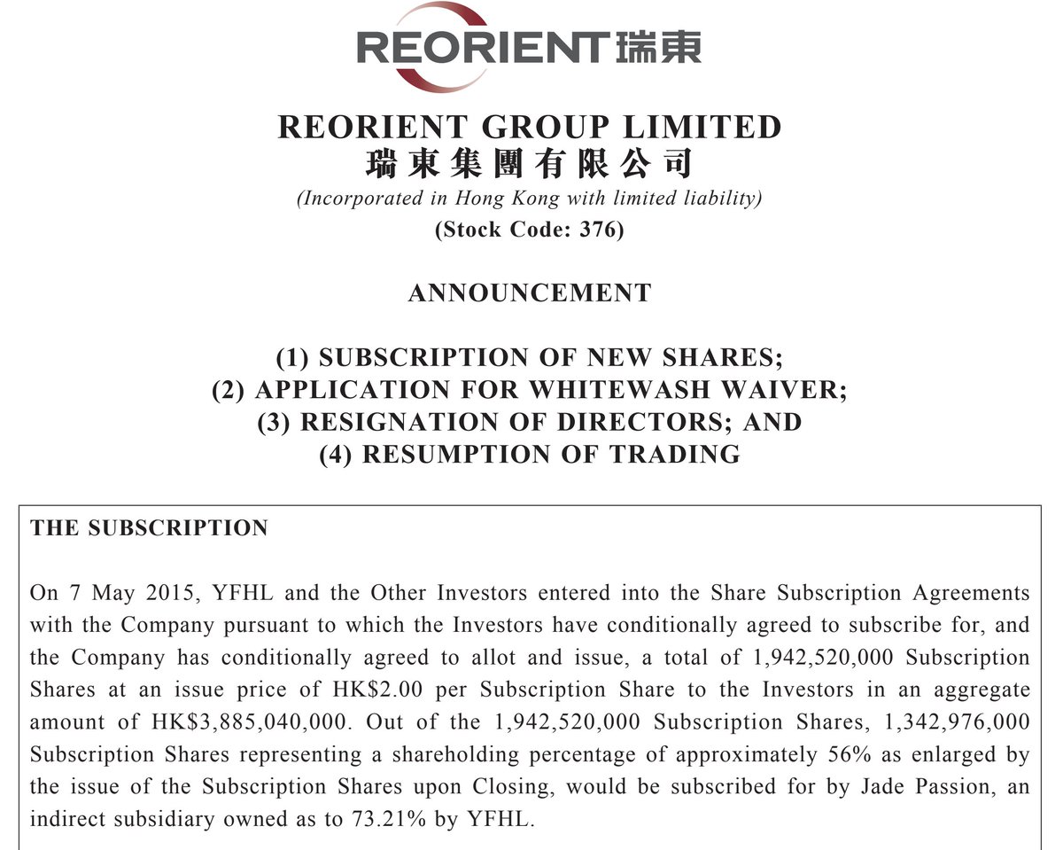 @thewirechina @NorthropKatrina @eliotcxchen @DavidBarboza2 @QianIsabelle @muyixiao @vwang3 It was a uniquely Hong Kong deal. Ko sold 1.94 billion new shares to Yu and Ma's consortium at a price WAY lower than what Reorient was trading at. For anyone in the deal, it was a license to print money b/c once word got out that Ma was behind the deal, shares soared. (13/x)