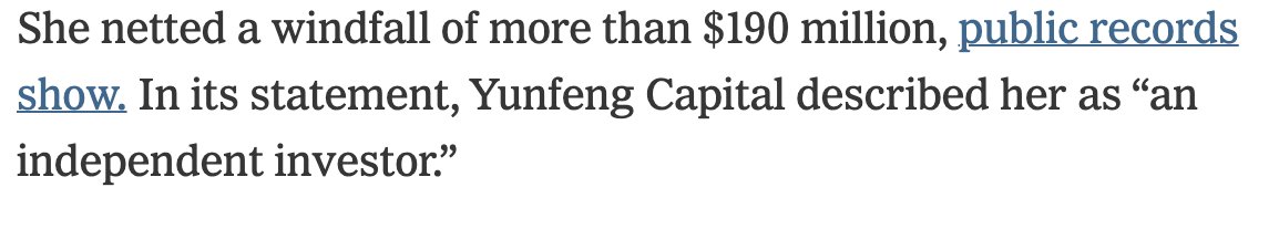 @thewirechina @NorthropKatrina @eliotcxchen @DavidBarboza2 @QianIsabelle @muyixiao @vwang3 So you'd think that ANYONE invited to be part of the Yu/Ma consortium would have to be super-connected and well known. You don't let just anyone get a super-discounted slice of a company whose share price is near certain to take off, right? Right? (16/x)