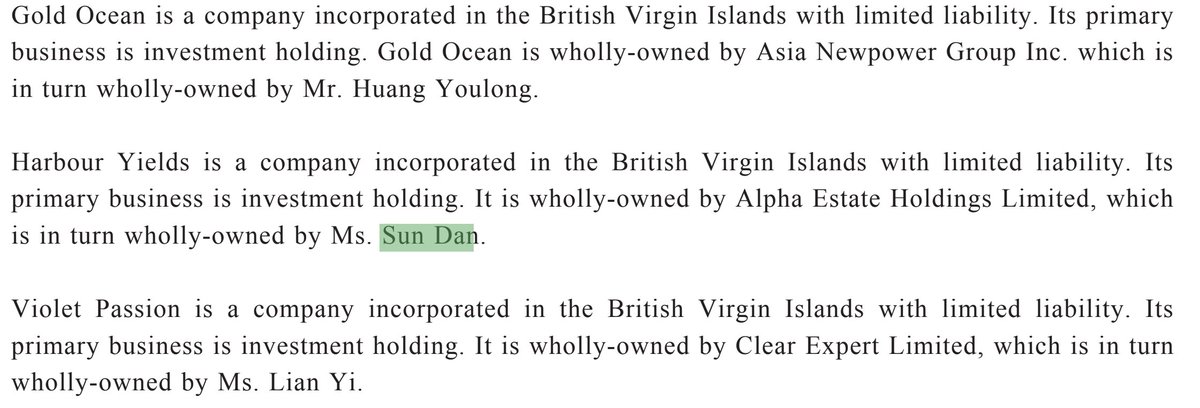 @thewirechina @NorthropKatrina @eliotcxchen @DavidBarboza2 @QianIsabelle @muyixiao @vwang3 For example, there was Lian Yi, who, when the deal closed that Nov., would own 7% of Reorient/Yunfeng Financial via BVI Violet Passion. There was Fan Yufang, owner of BVI Chosen Global, with 4.5%. Total, complet unknowns. Lu Yongqing of Gentle Bright we'll get to later. (18/x)