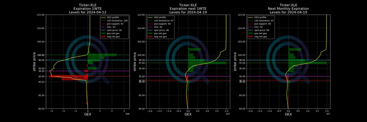 3/ As always until futures are ready, best proxy is XLE to asses sentiment via option positioning. NetGex across different maturities here