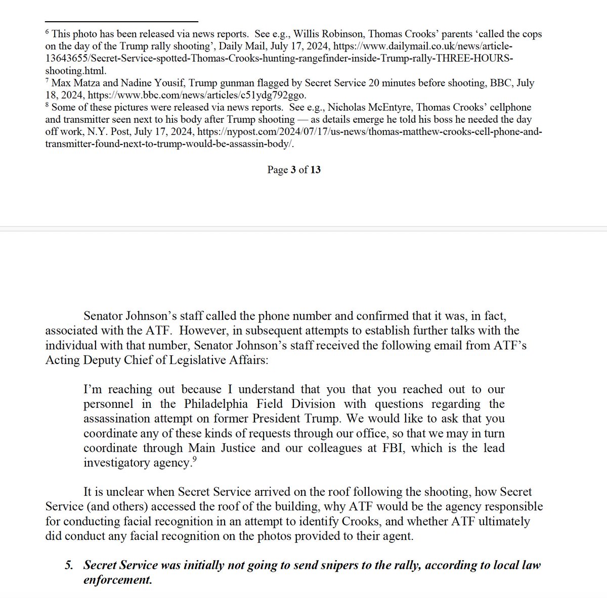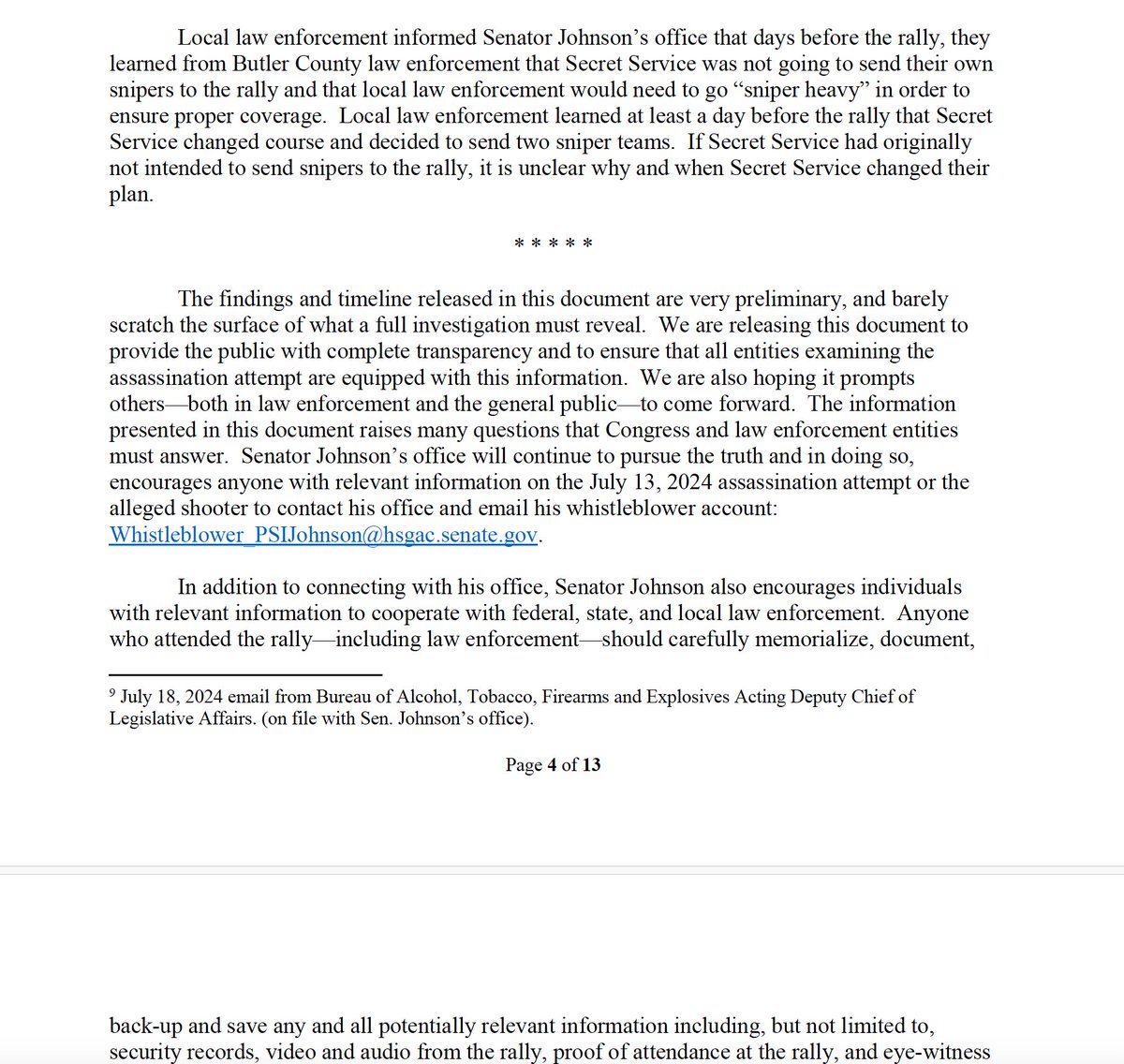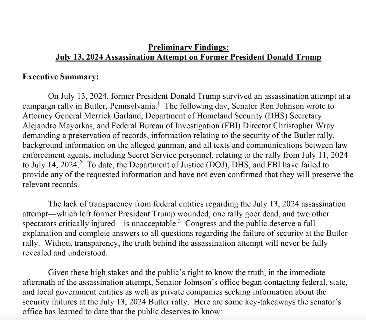 🚨🚨🚨 BREAKING: Sen. Ron Johnson and his staff have written an initial report from his bipartisan investigation informed by whistleblowers who have talked to his office. I’ve obtained the 13-page executive summary of it.