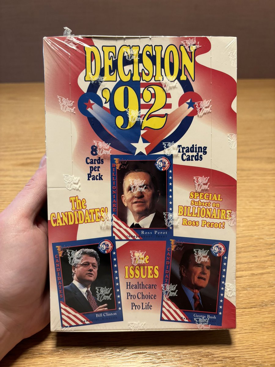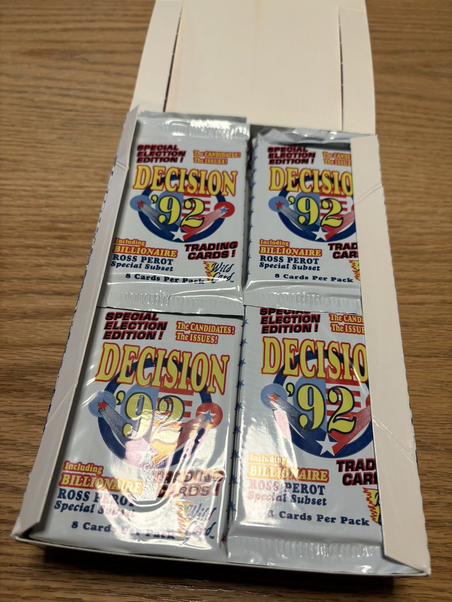 Alright, it’s been a long day in what’s already a long week. Time for some lighthearted, nerdy political fun. My pal @DCHomos got hold of a box of Election ‘92 trading cards and gifted me some. I kid you not. These are 32 years old. They’ve never been opened. Join me…