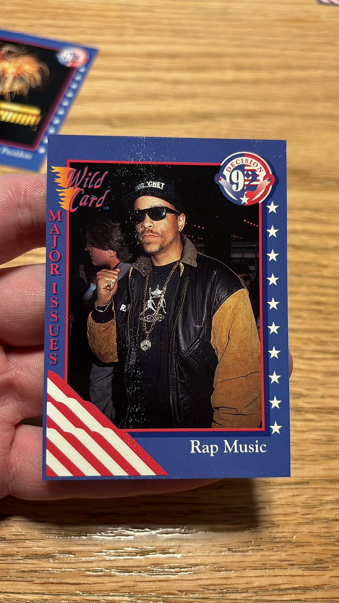 We got an Ice-T card! This was early in rap’s cultural ascendancy, and it came right as police brutality against Black citizens was, yet again, a major flashpoint after the L.A. protests in response to a group of cops getting away with cruelly beating a defenseless Rodney King on tape. As you can see, @FINALLEVEL was a major activist and artist voice in the national discussion.