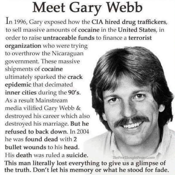 Gary Webb talks about how he discovered the CIA was trafficking cocaine into the US to fund far right genocidal paramilitaries in Central America, who btw were also armed, trained and led by Israelis as they raped, pillaged, and massacred babies and children and eliminated entire communities.