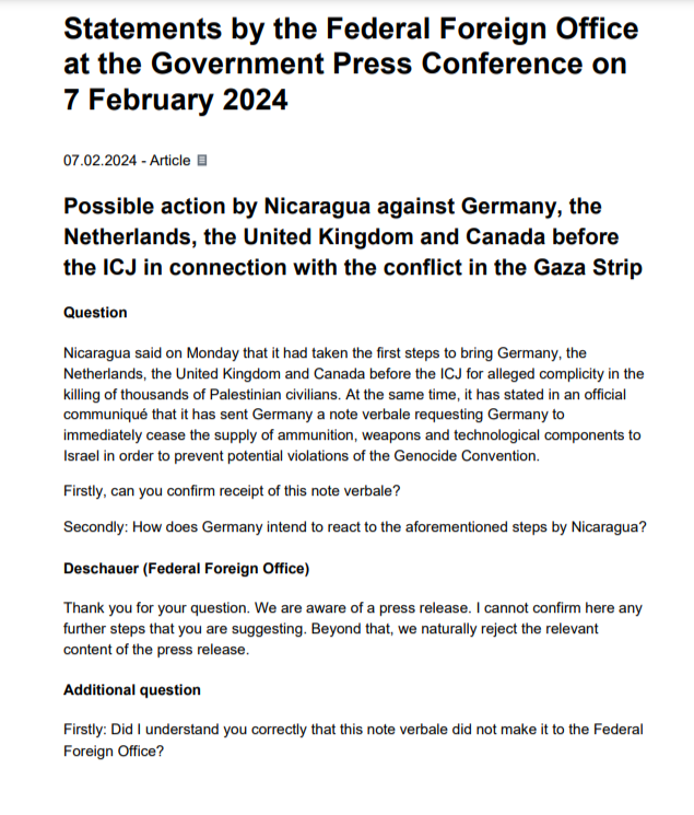 Ma in conferenza stampa, il Ministero degli Affari Esteri tedesco ha negato di averla ricevuta e, nel contempo, ha rigettato le accuse che avrebbe conosciuto solo dal comunicato stampa