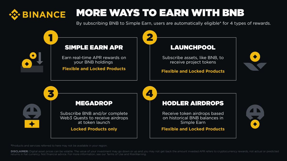 Unlock 4 types of rewards automatically by subscribing BNB to Simple Earn!