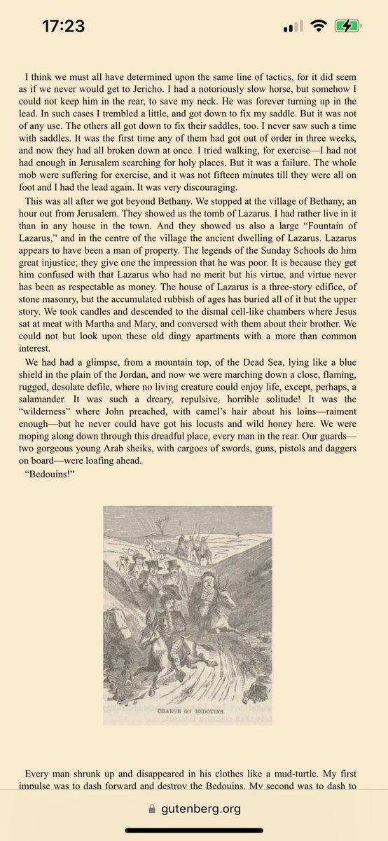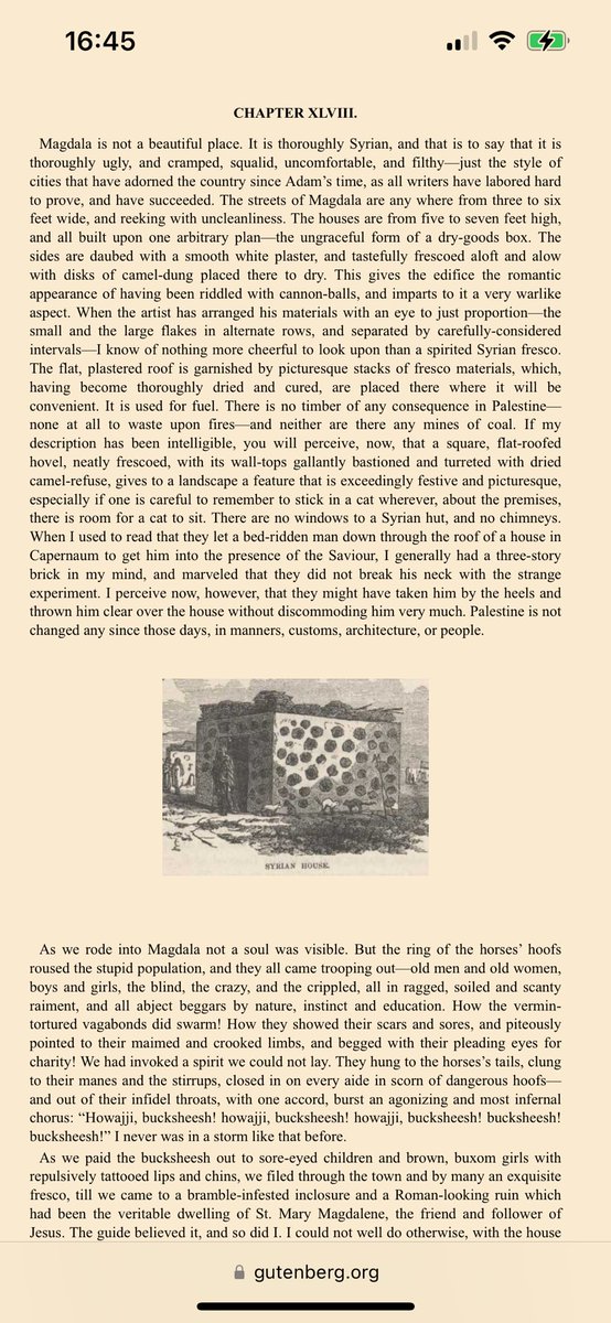 Intanto sappiate che nel suo viaggio non incontra alcun palestinese ma solo arabi, ebrei, turchi, cristiani, beduini. Nessun palestinese: questo termine, ad indicare una presunta “nazionalità”, sarà inventato solo un secolo più tardi. 2/n
