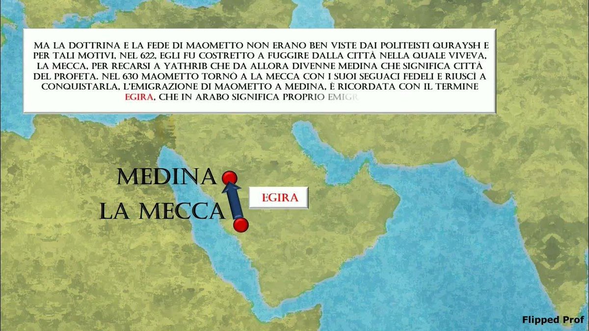Nel 622 l’Egira di Maometto segna l’inizio dell’era musulmana. A Medina Maometto non è solo un profeta, ma il capo di un vero e proprio Stato islamico. Chi non si adegua deve lasciare la città o sarà fisicamente eliminato.