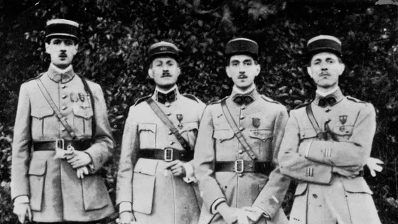 Geneviève was born on 25 October 1920 in Saint-Jean-de-Valériscle (Gard) southern France. Her father, Xavier, was the eldest brother of Charles and they both saw action in the Great War. When a second war came along in 39, she was in Brittany where her father was moblized as a reserve officer. Charles is on the left in the photo and Xavier second from the right. 2/9
