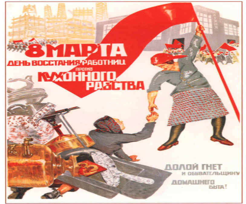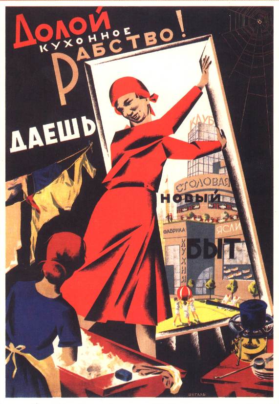 Kollontai promoted a concept of the ‘new woman’ – one freed from the oppression of marriage, household work and the business of raising children; all these chores must be taken on by society and state. They would take on children’s education (including sexual), urge a move toward a nationwide catering industry, collective housing, foster care and so on. For Kollontai, love was to be freed, too – civil partnership would take the place of traditional marriage.