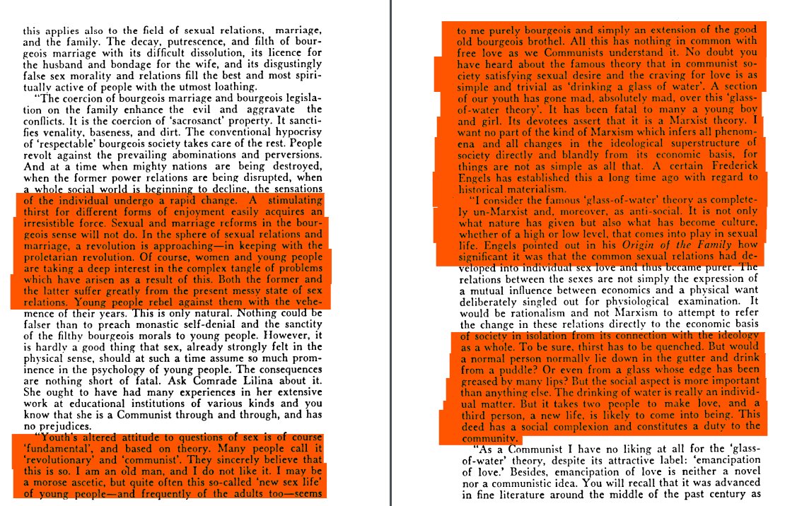 It was one named Alexandra Kollontai who popularized "Glass of water theory" as a social propaganda