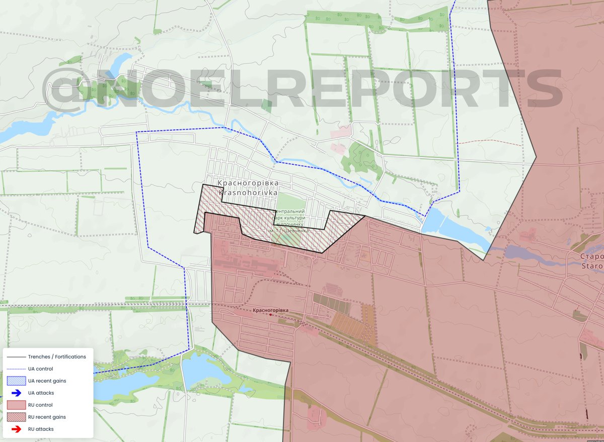 Inside Krasnohorivka, Russians have advanced further into the center and northern parts of the city, based on new geolocated footage. It is expected that Ukraine will soon have to completely leave the area in order not to get surrounded south of the Lozova river.