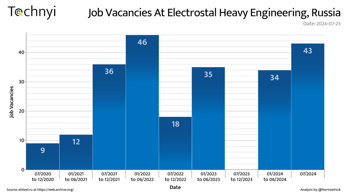 @tochnyi 8/n Electrostal is vital to Russia's war effort, with a rich history in defense production and key radial forging machines. Its specialised steel capabilities and increased job openings indicate a heightened demand for war materials. More details at tochnyi.info/2024/07/russia…