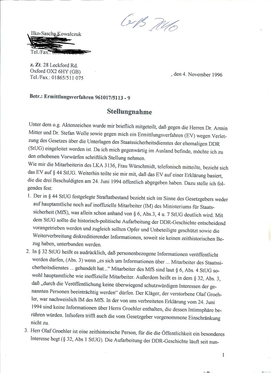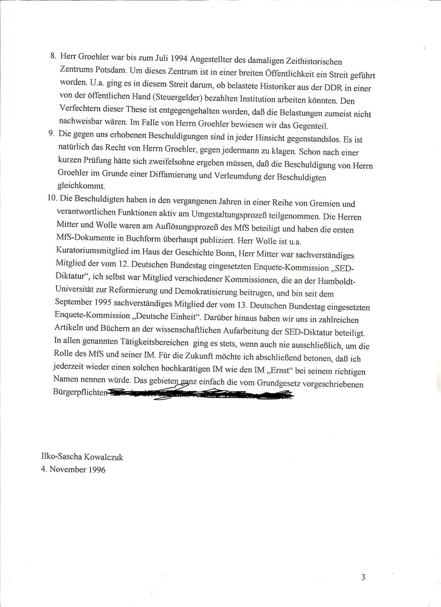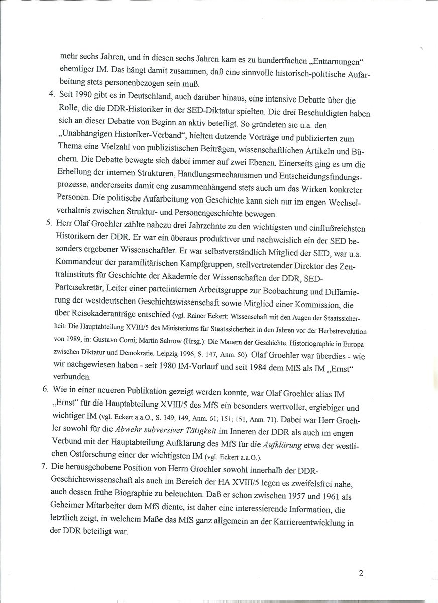 30/ischen Landtag über Widerstand in Deutschland. Armin Mitter, Stefan Wolle und ich waren entsetzt und verteilten vor dem Landtag Flugblätter, auf dem wir die IM-Tätigkeit beschrieben. Groehler war einer der prominentesten SED-Historiker, Parteisekretär, Autor vieler Bücher und
