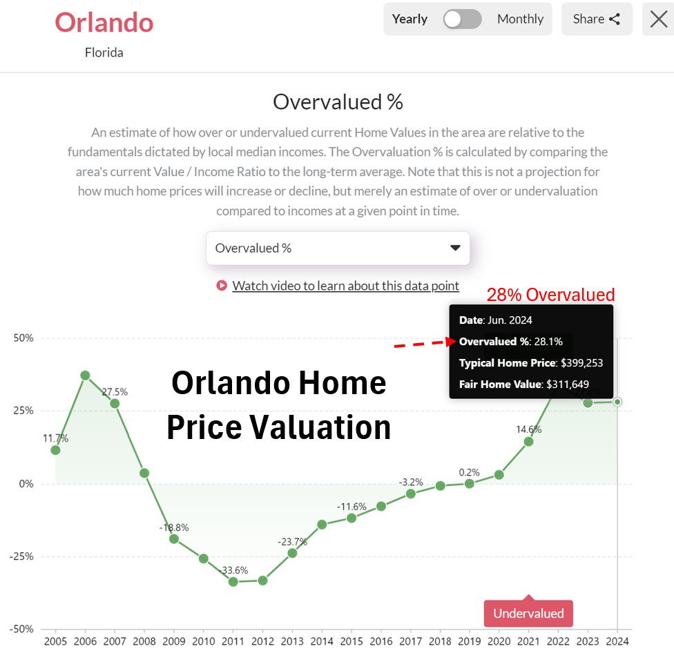For instance - home values in Orlando are currently 28% overvalued compared to their long-term norms acc to data on Reventure App.