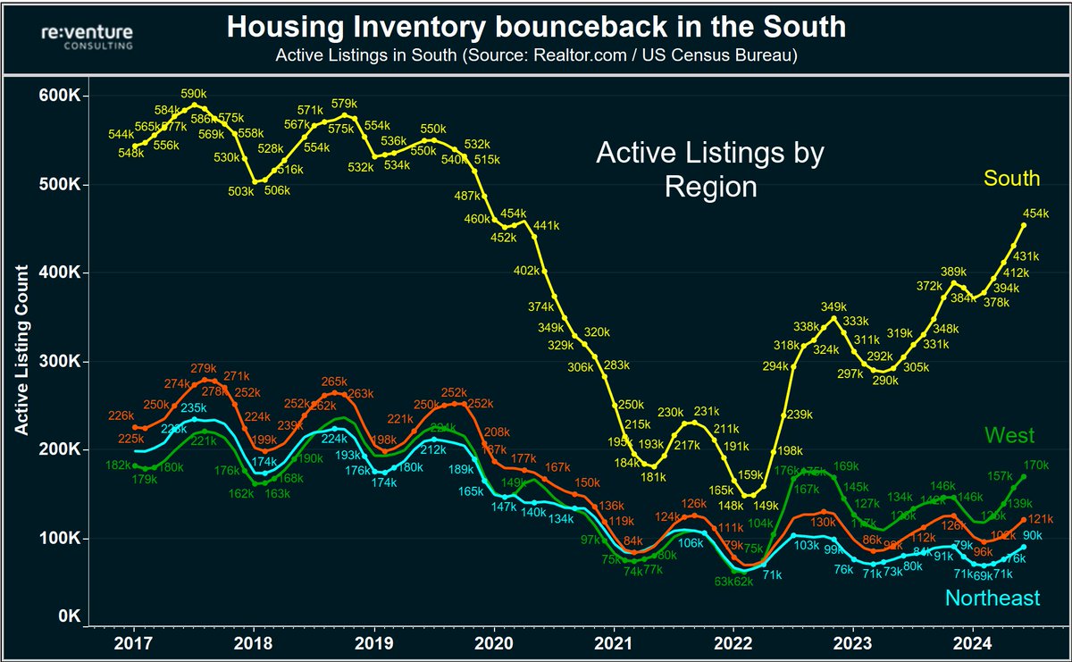 3) Southern housing markets are facing a big risk of home prices declines in the second half of 2024, and into 2025.